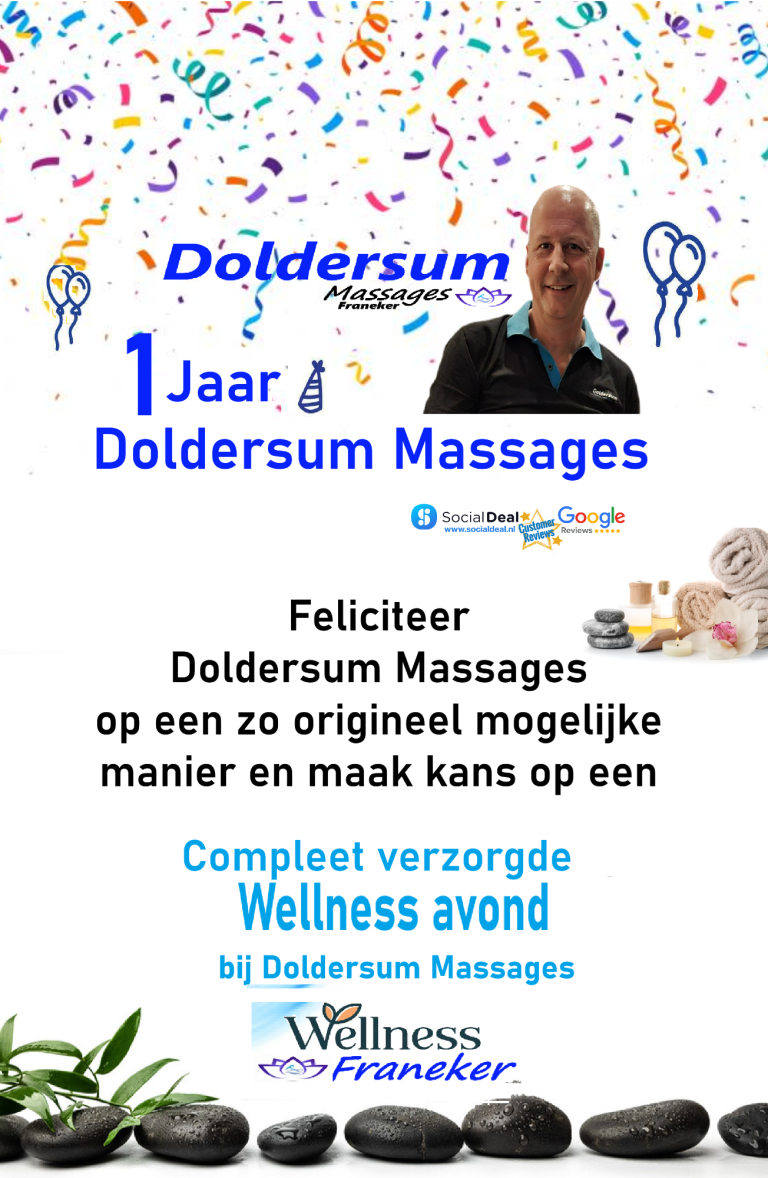Om het 1 jarig jubileum te vieren geeft Doldersum Massages een compleet verzorgde Wellness avond cadeau. En dat kun jij winnen!
