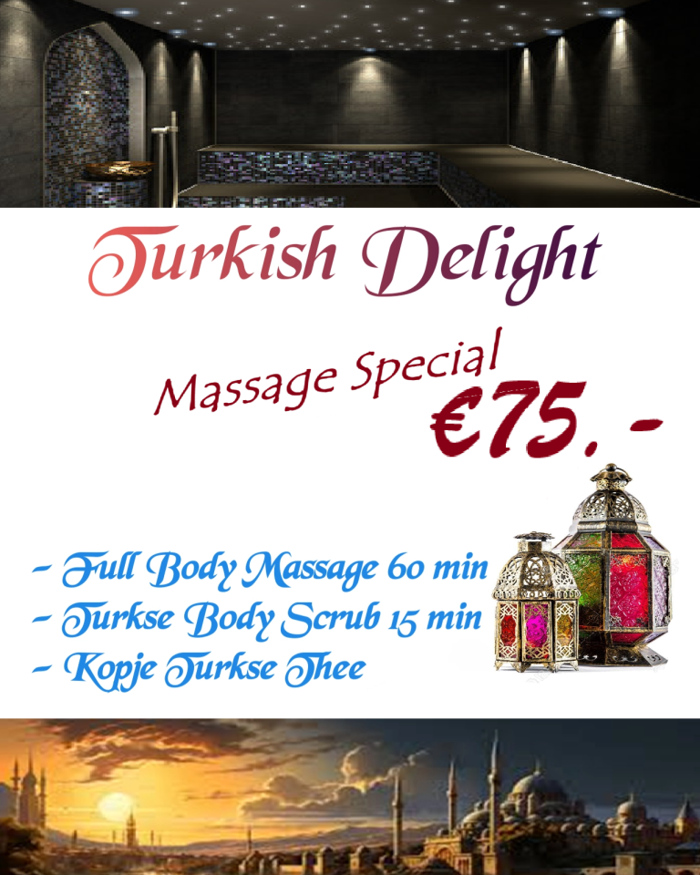 Ditmaal een Turkish Delight. Ook wel zoete verwennerij in de vorm van een heerlijke ontspannende massage van het gehele lichaam.